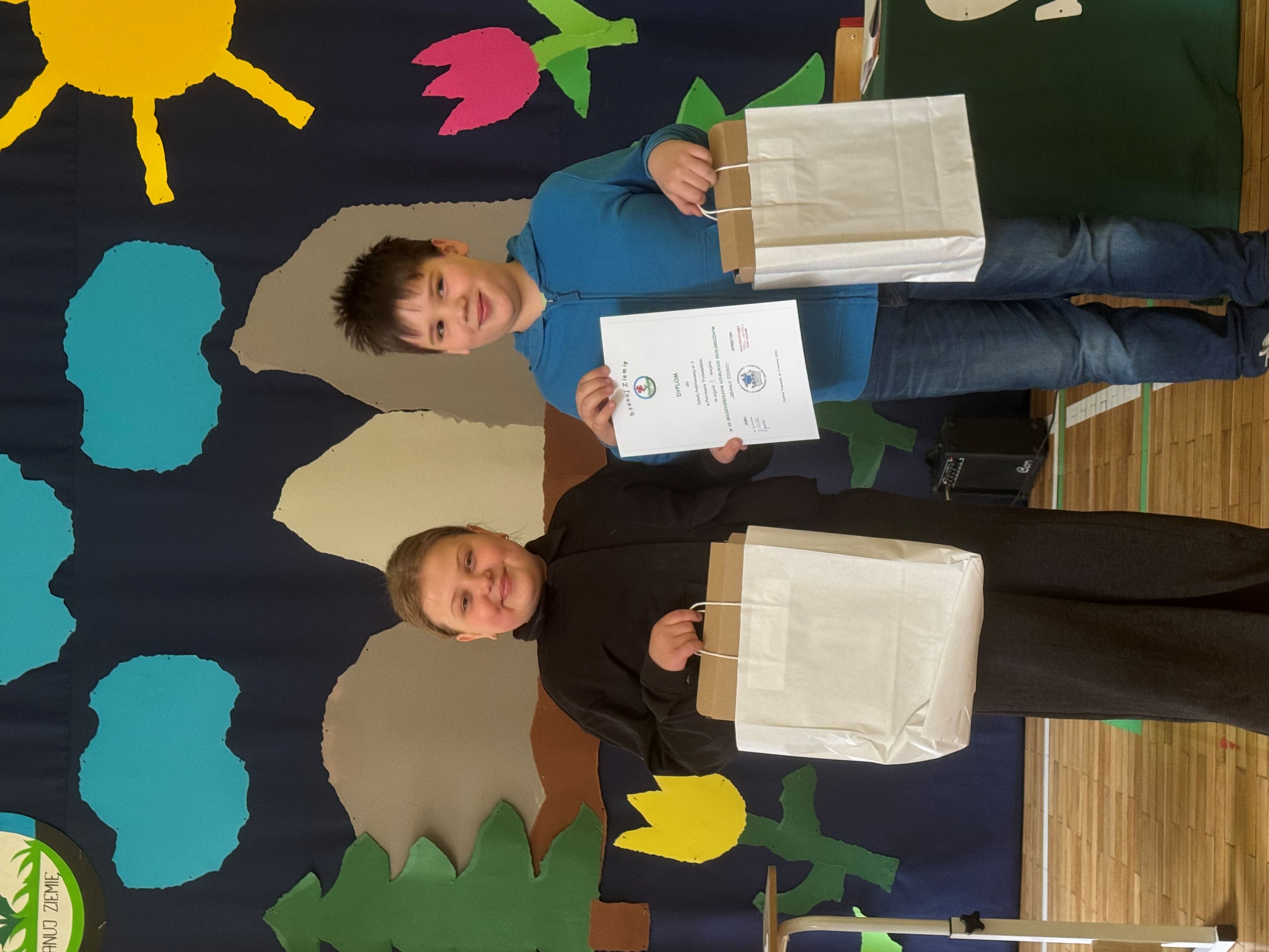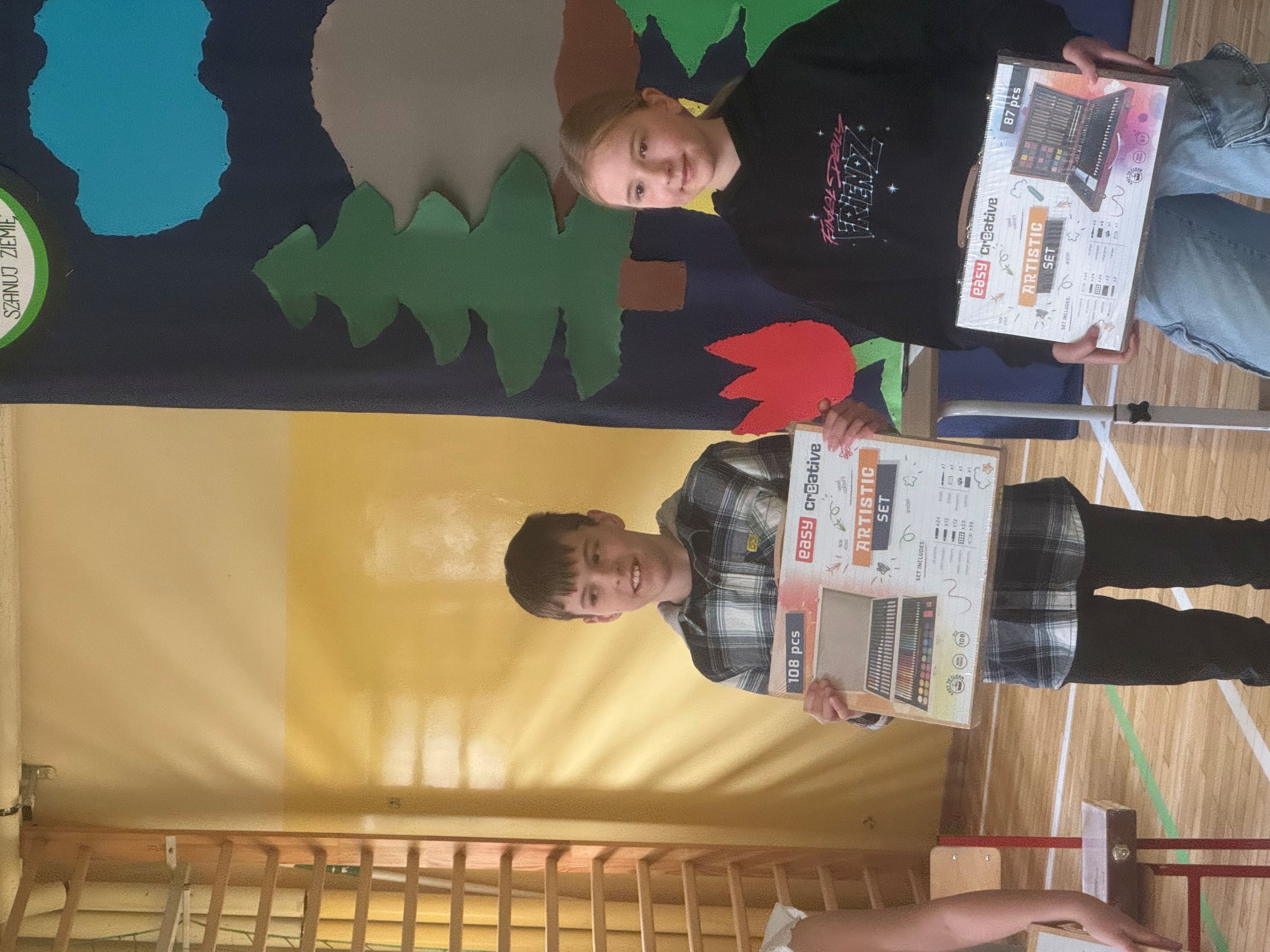 Naszą placówkę reprezentowali uczniowie klasy III b - Piotr Grudzień i IIId - Aleksandra Kacperek. Wspólnie wywalczyli zaszczytne III miejsce. Sukces odniósł również Witomir Gawiński (III d), który również zajął III miejsce w pierwszym etapie konkursu - praca plastyczna.