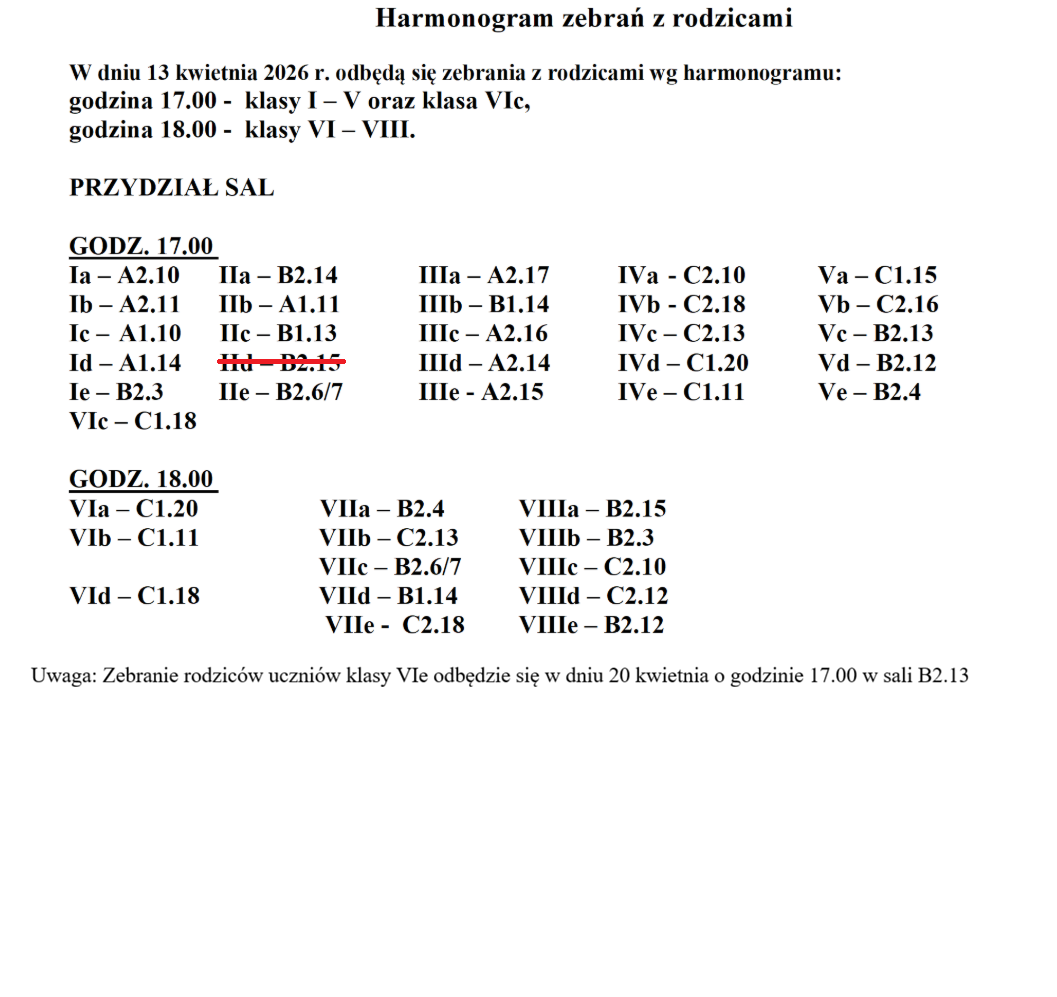 UWAGA: zebranie z rodzicami uczniów klasy 2d zostaje odwołane. Odbędzie się w innym terminie.